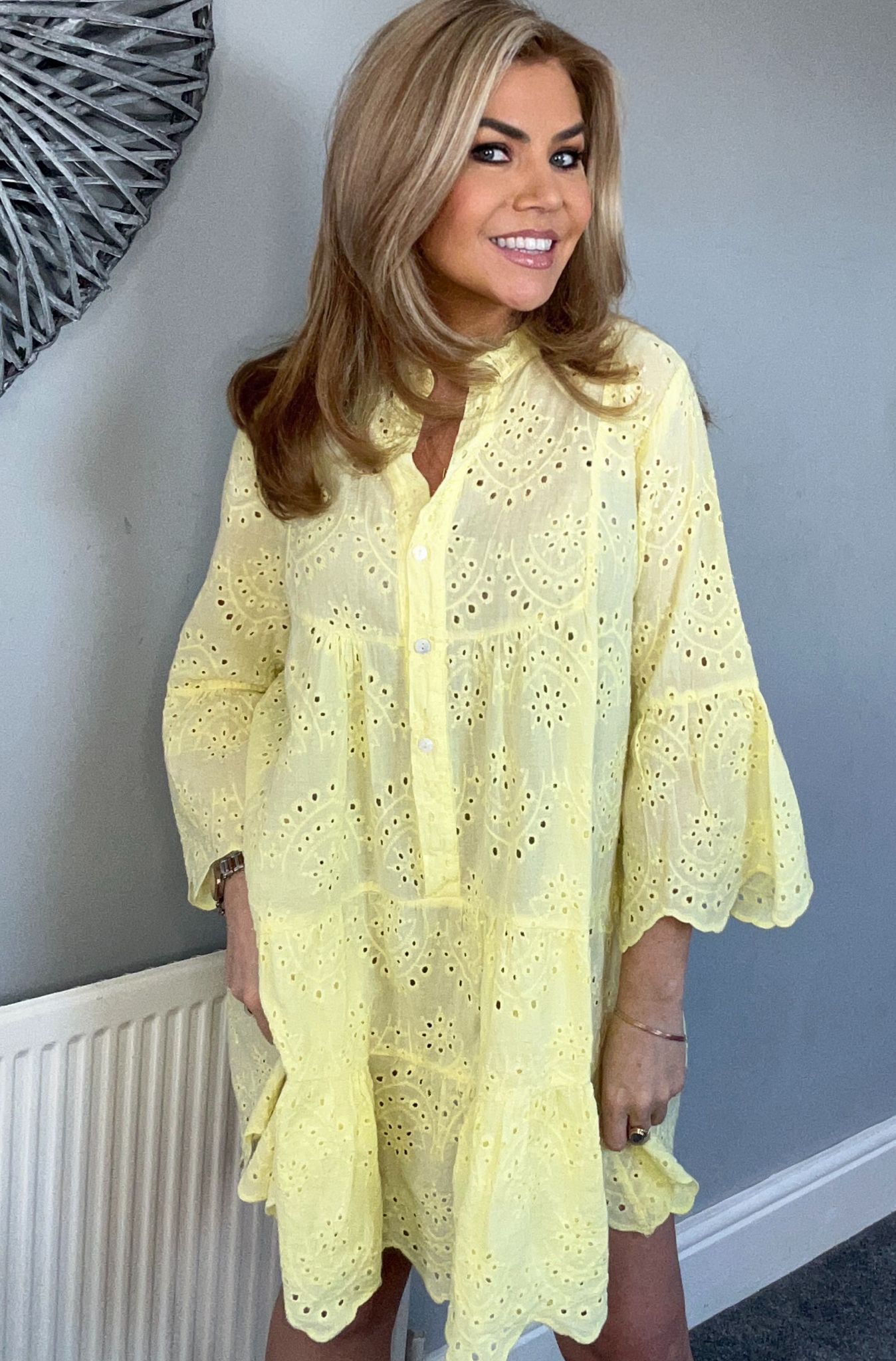 'Bonnie' Broderie Anglais smock dress yellow