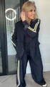 The suit of dreams! Elasticated waist wide leg trousers and matching blazer with side stripe. The must have suit of the season, this relaxed shape can be dresses down qwerty your fav white trainers out dresses up with your heels - the glam is back!