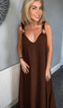 'Cassie' gold trim maxi dress brown