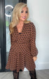 Isabel - she's back in a chocolate brown dobby. This designer inspired tiered long sleeve dress with an elasticated back is the perfect Autumn dress. can be dressed down with chunky bikers and a faux leather jacket or dressed up with a 2 part sandal and a clutch!