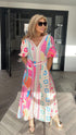 Hello Spring.... 'Aimee' is our new bright multi print belted maxi, she is bringing the fee good vibes! The print feels so chic, she has beautiful balloon sleeves to add a touch of feminity to an otherwise simple silhouette. We have added a belt to cinch you in at the waist and delicate buttons for extra detail. Wear with heels or false fir day to night Summer dressing.
