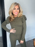 'Lulu' - Stand out in style with our new soft touch stretch ribbed lounge set. Long sleeve crown neck top featuring frill detail at the shoulder and a matching elasticated waist bootcut trouser. Stay comfy, cosy and stylish with the ultimate glam lounge set.