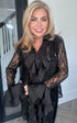 Yes.... we are found the perfect lace blouse for your Christmas night out! All over embellished lace with satin frill cuffs, collar and trim. Shr is the perfect length and teams back perfectly with our Marni leather look kick flares!