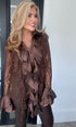 'Leona' frill lace blouse brown