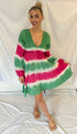 Feel luxe and goddess in this gorgeous palette ombre tie dye detail. A casual and comfy fabric with elastication across the bust and the back for extra comfort. A v neck front and slightly scooped out the back with an elastic cuff. The perfect Summer day dress.