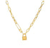 Stainless steel, 18k gold plated, waterproof and hypoallergenic. The plating is long lasting and does not tarnish.