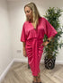 The most flattering dress we have ever seen! This stretch satin V neck dress sits just below the knee with the gathered rouched front it covers all the right places! Covers a multitude of sins and we love it!!!!!! Girls this is a must in everyones wardrobe - team with a 2 part sandal, a multi chain necklace and a clutch bag - an absolute stunner!